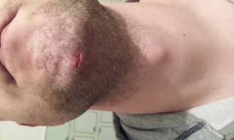 Zdravim asi tyzden a pol dozadu som spadol a rozbil si bradu o chodnik. Nasledkom coho bola trzna rana vid foto. Spravila sa chrasta to by bolo v poriadku ale asi o 3-4 dni nato sa pod ranou a okolo spravila ako keby gulicka alebo hrcka? Co to moze byt? Hnis? alebo je to normalne?
